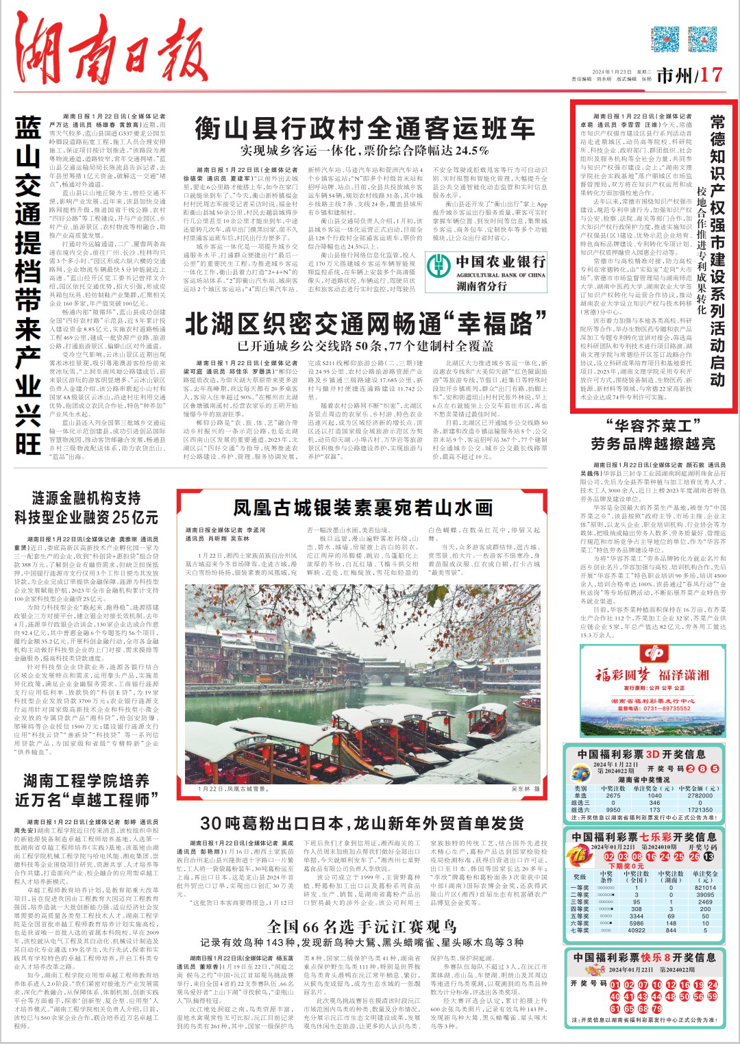 去年以来,常德市围绕知识产权强市建设,规范专利申请行为,加强知识产权与公安、检察、法院、海关等部门合作,加大知识产权行政保护力度,推进实施知识产权强县(区)建设、优势示范企业培育、特色商标品牌建设、专利转化专项计划、知识产权质押融资入园惠企行动等。