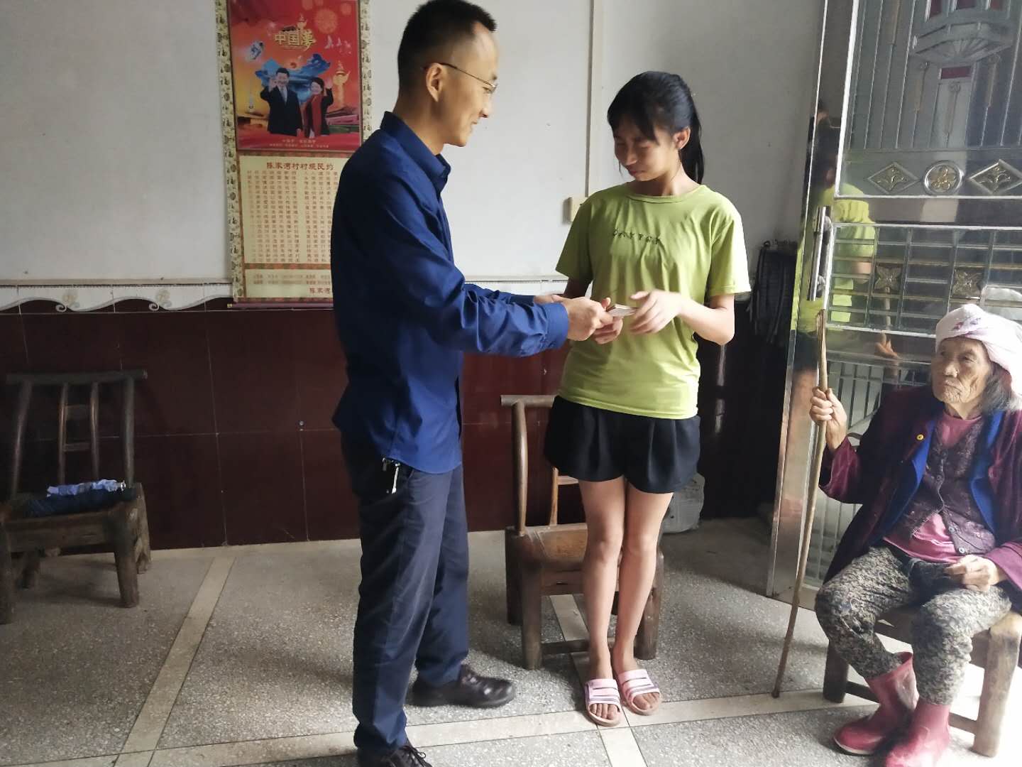7月18日,驻陈家湾村工作队带着常德市市场监管局干部职工的温暖关怀和满满爱心,冒着大雨对陈家湾村在校的10名困难学生进行走访慰问,把市局干部职工捐赠的助学金30000元,现场发放到贫困学生手中。