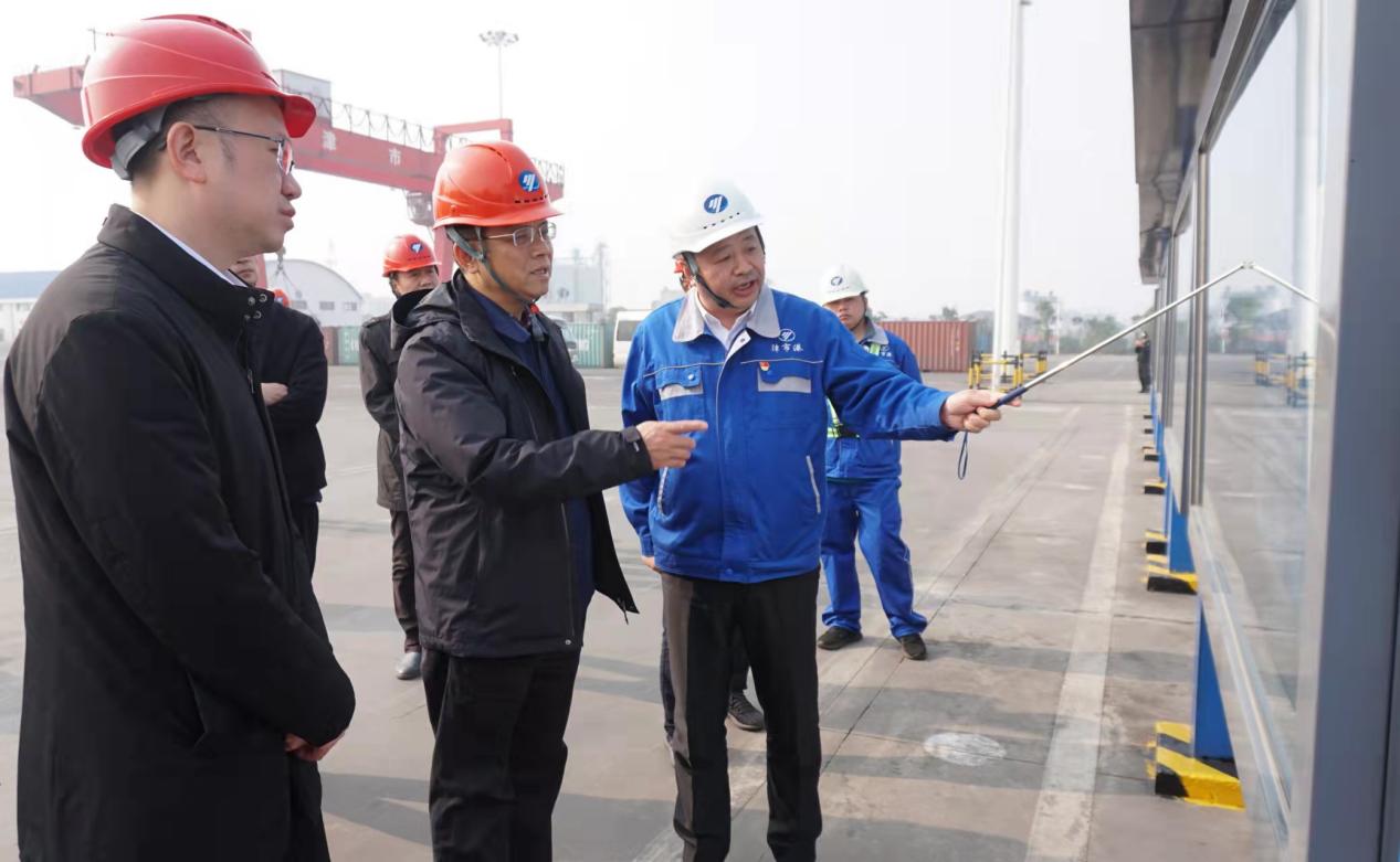 省调研组一行前往津市市港,调研建设运营与特种设备安全情况。