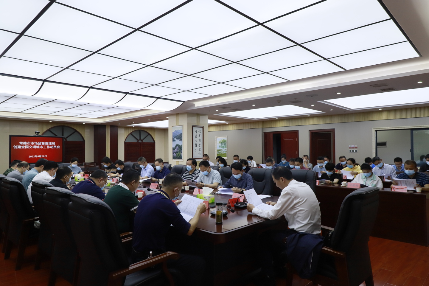4月28日,常德市市场监督管理局召开创建全国文明城市动员大会,市市场监管局党组书记、局长王苠睿作动员讲话,党组副书记、副局长曾遥主持会议,市市场监管局各科室和直属机构负责人、武陵区、鼎城区、经开区、柳叶湖市场监管局主要负责人参加会议。