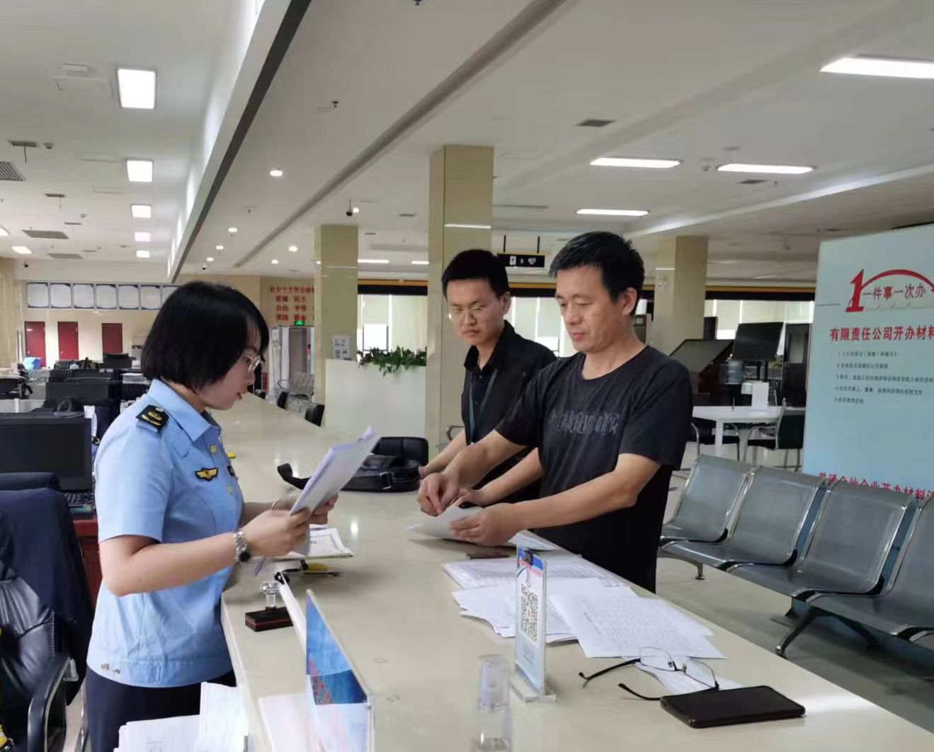 图为工作人员为企业办理业务