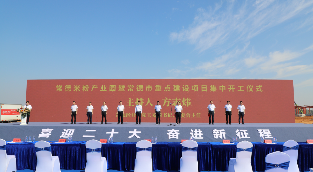 10月1日,常德米粉产业园暨常德市重点建设项目集中开工仪式在常德经开区举行。市委常委、市委宣传部部长彭晛丹宣布项目开工。常德经开区党工委书记车世忠以及市市场监督管理局党组书记、局长王苠睿出席开工仪式并致辞,常德经开区党工委副书记、管委会主任方志炜主持开工仪式。常德经开区管委会总规划师邹吉茂,湖南鑫三香常德米粉集团有限公司董事长杨明晓出席开工仪式。