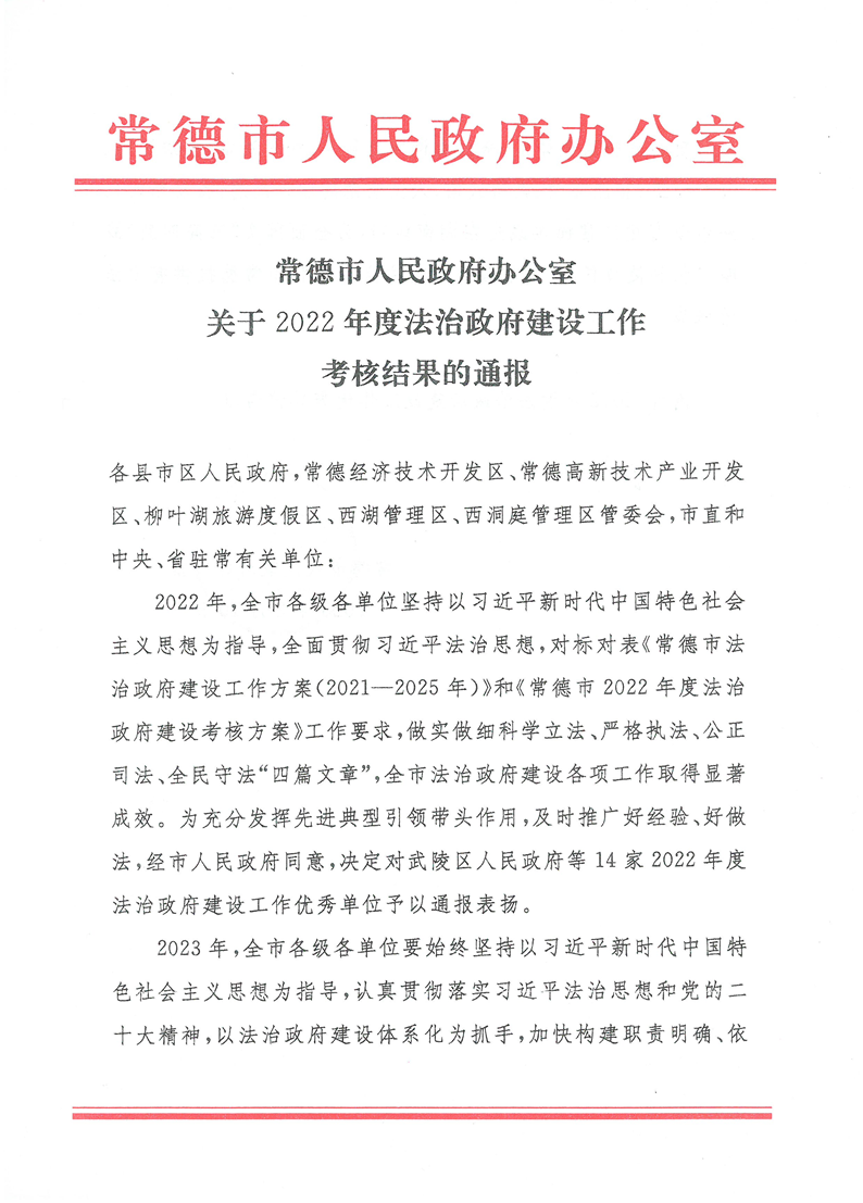 喜讯!常德市市场监督管理局荣获“2022年度法治政府建设工作优秀单位”称号 来源:市市场监督管理局 2023-02-21 15:49 字体:【小 大】 2月20日,从常德市人民政府办公室获悉,常德市市场监督管理局荣获“2022年度法治政府建设工作优秀单位”称号。 2022年,常德市市场监督管理局深入贯彻党的二十大精神,全面落实习近平法治思想精神,紧紧围绕市委市政府决策部署,全面落实法治政府建设各项工作和任务,持续推进市场监管工作依法行政,有效推动市场监管工作健康发展。