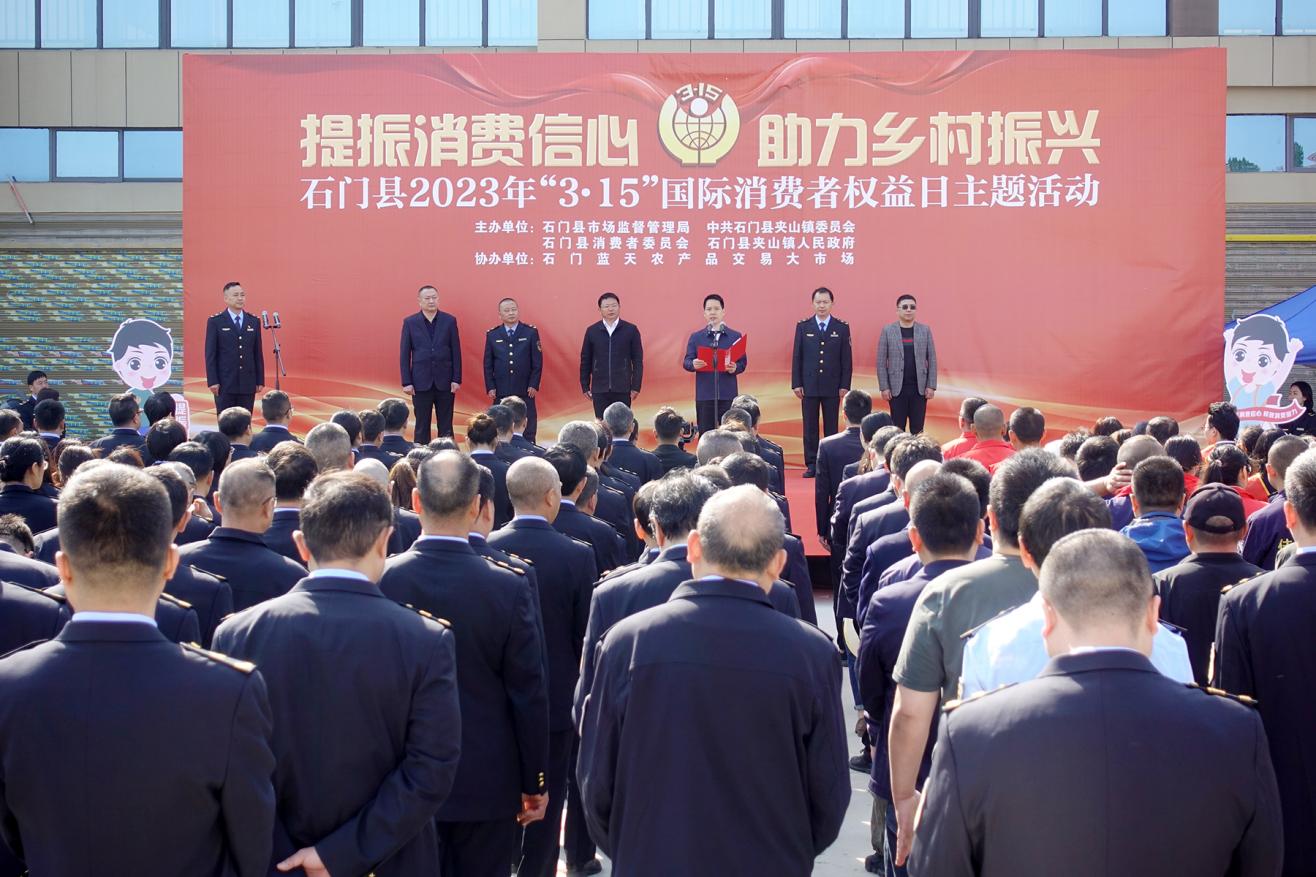 3月15日上午,石门县市场监管局、石门县消委联合夹山镇政府在夹山镇蓝天农贸交易市场开展了“3·15国际消费者权益日”现场活动,县委常委、县人民政府常务副县长廖江华出席活动并讲话。