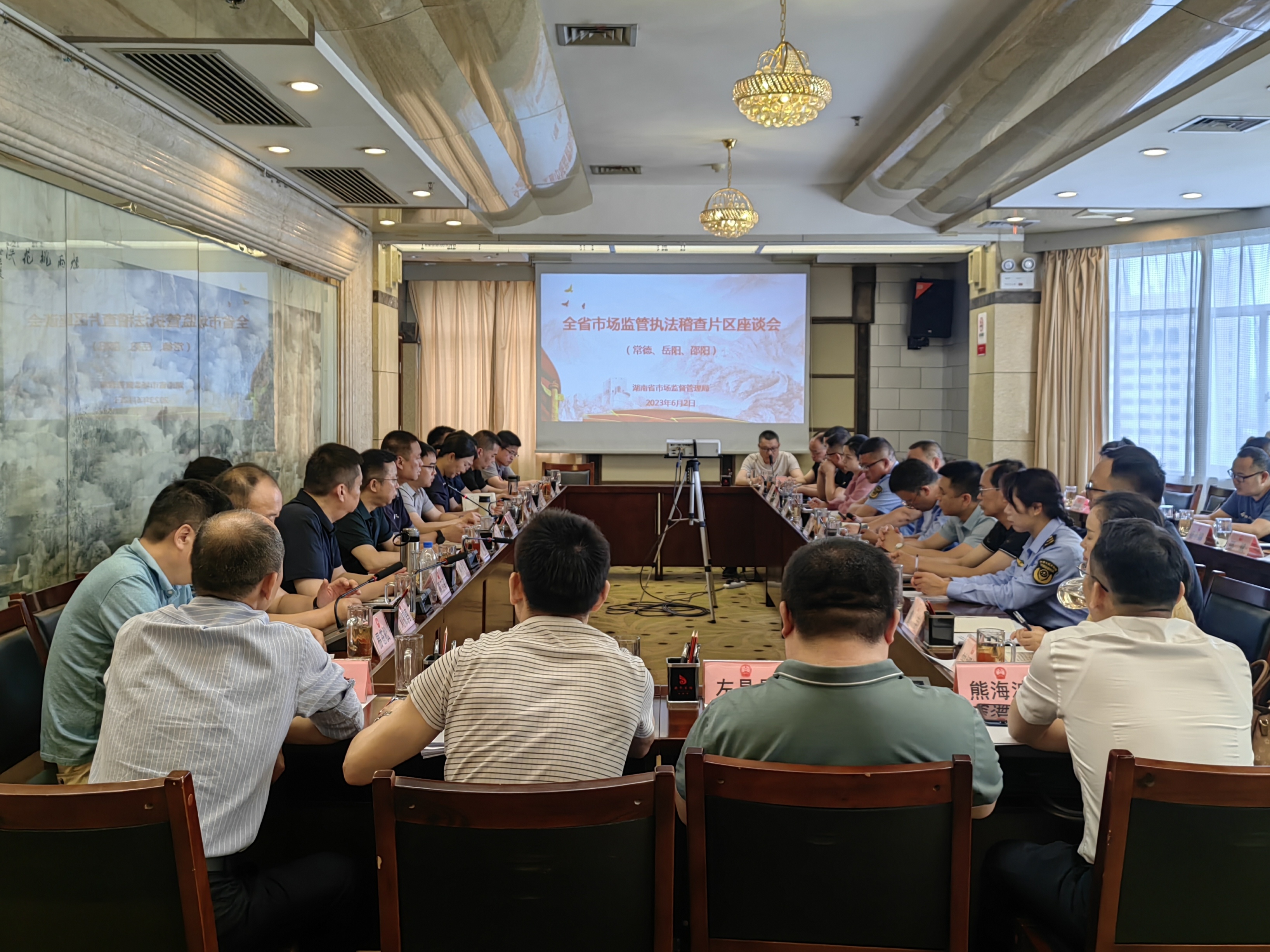 6月1日至2日,省市场监管局在常德举办执法稽查片区座谈调研。座谈会由省市场监管局执法稽查局局长王宇主持,市市场监管局党组成员、总工程师康凯,市市场监管综合行政执法支队党委书记、支队长戴卫军出席会议并讲话,岳阳市、邵阳市及常德市县两级执法机构相关负责人参加座谈。