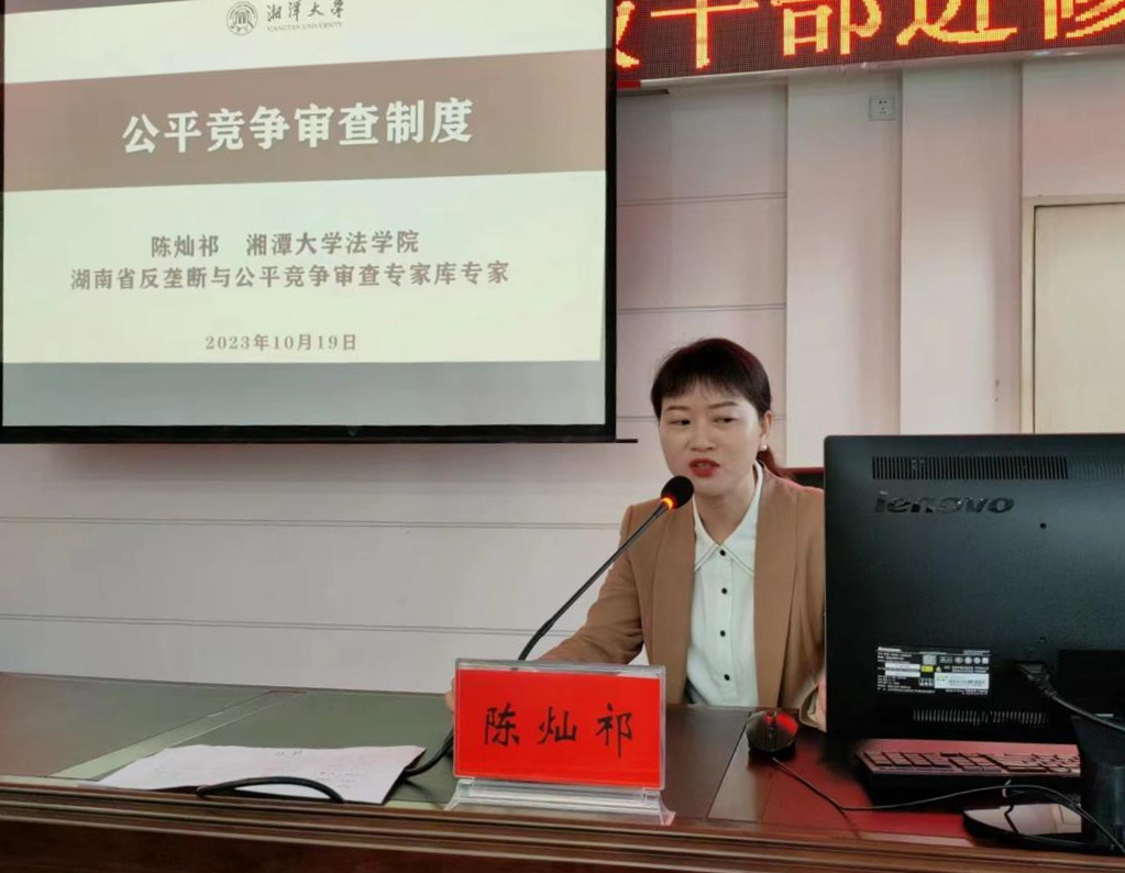陈灿祁以《公平竞争审查制度》为题,围绕公平竞争审查制度实施背景、制度框架、具体审查方式方法、有关法律规章及典型案例等内容,做了精彩生动、深入浅出的阐述与讲解。陈灿祁指出,公平竞争是市场经济的基本原则,是市场机制高效运行的重要基础。全面落实公平竞争审查制度,是夯实公平竞争政策基础的重要抓手,是建设全国统一大市场的必然要求。要切实履行公平竞争审查程序,确保相关政策措施应审尽审;要建立常态化督查机制,及时通报督查情况、将公平竞争审查纳入行政绩效考核、依法行政考核等评价体系。