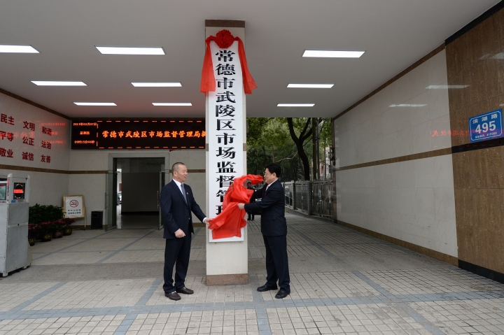 常德市武陵区市场监督管理局全体局领导成员,原工商武陵分局、原区质监局、原区食品药品监督管理局各股室(所)负责人参加揭牌仪式。