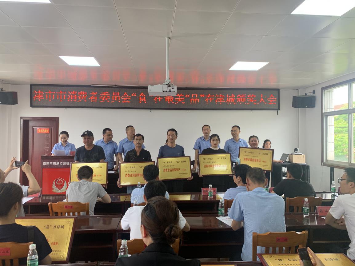 5月26日,津市市首届“‘食’在最美·‘品’在津城”评选活动颁奖仪式在津市市市场监管局会议室举行,21家获奖餐馆负责人和3位美食短视频拍摄优秀个人,从工作人员手中接过了证书和奖牌。
