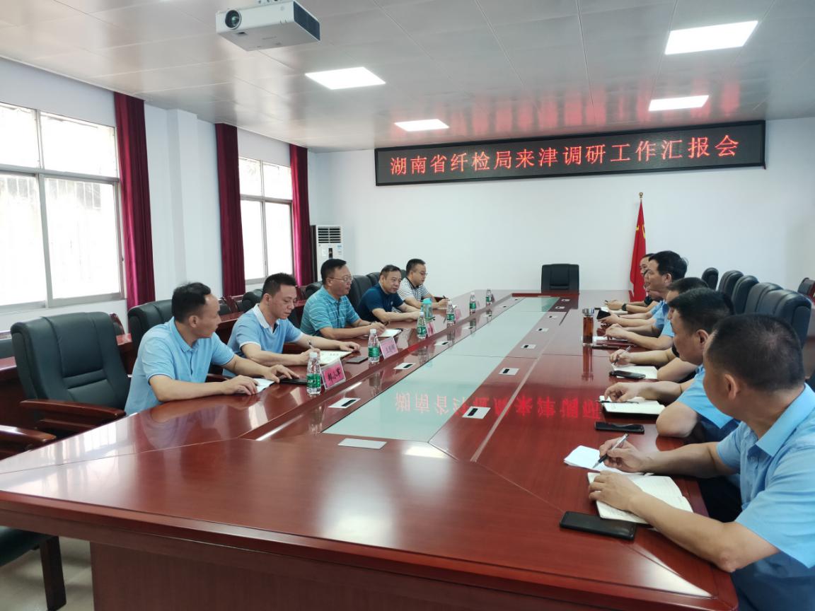 6月11日、12日,湖南省纤检局局长罗纳晚一行到津市市开展了纤维及纤维制品监测工作调研。津市市市场监管局对津市纤维及纤维制品监督工作进行汇报。