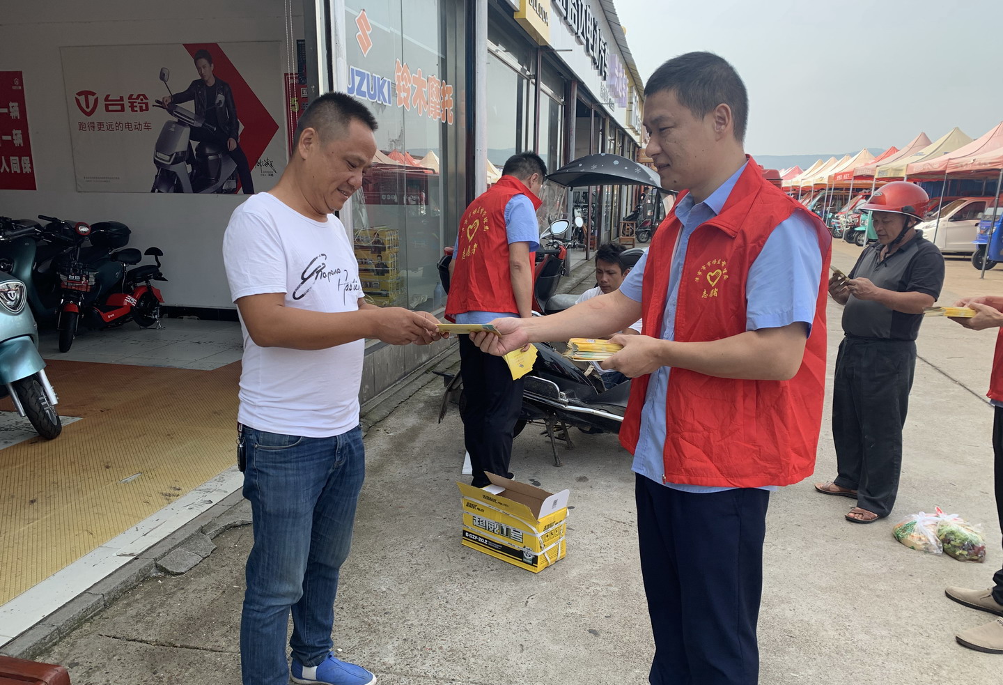 “您好,这是交通问题顽瘴痼疾集中整治倡议书,您看一下”“您好,您知道交通顽瘴痼疾的具体含义是什么吗?……”党员志愿者覃兵耐心的为群众讲解。9月11日,津市市市场监管局的党员志愿者们走上街头,向市民宣传“交通问题顽瘴痼疾整治”相关内容。