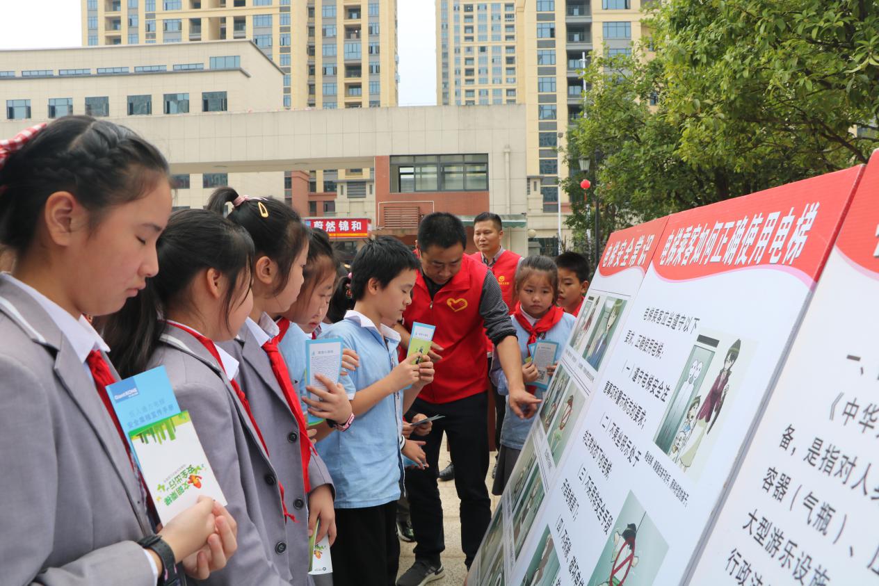 当日下午,区市场监管局特种设备安全监察股工作人员在鼎城区江南小学、华邦国际小区开展“电梯安全宣传周”暨电梯安全知识进校园、进社区、进小区宣传教育活动。