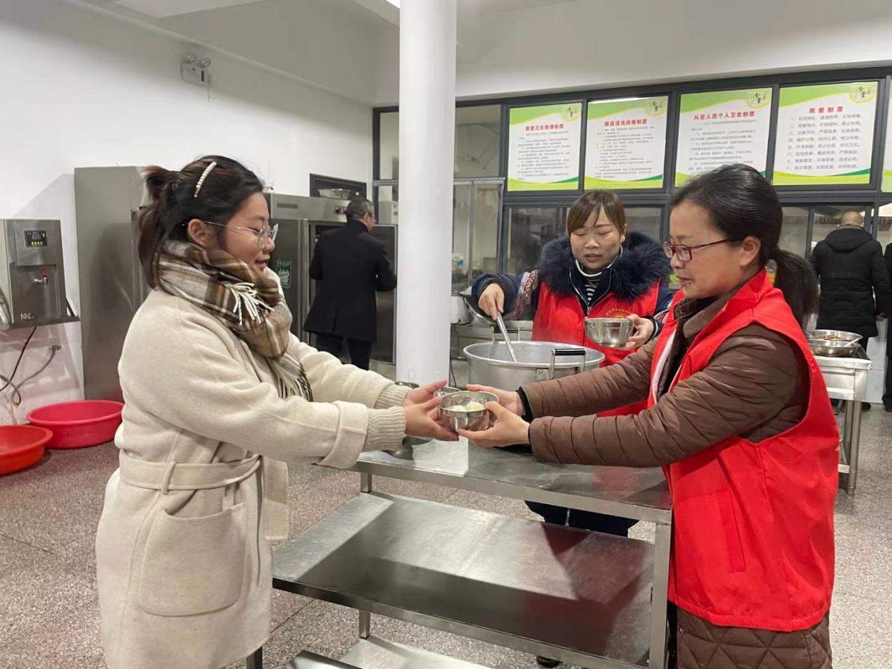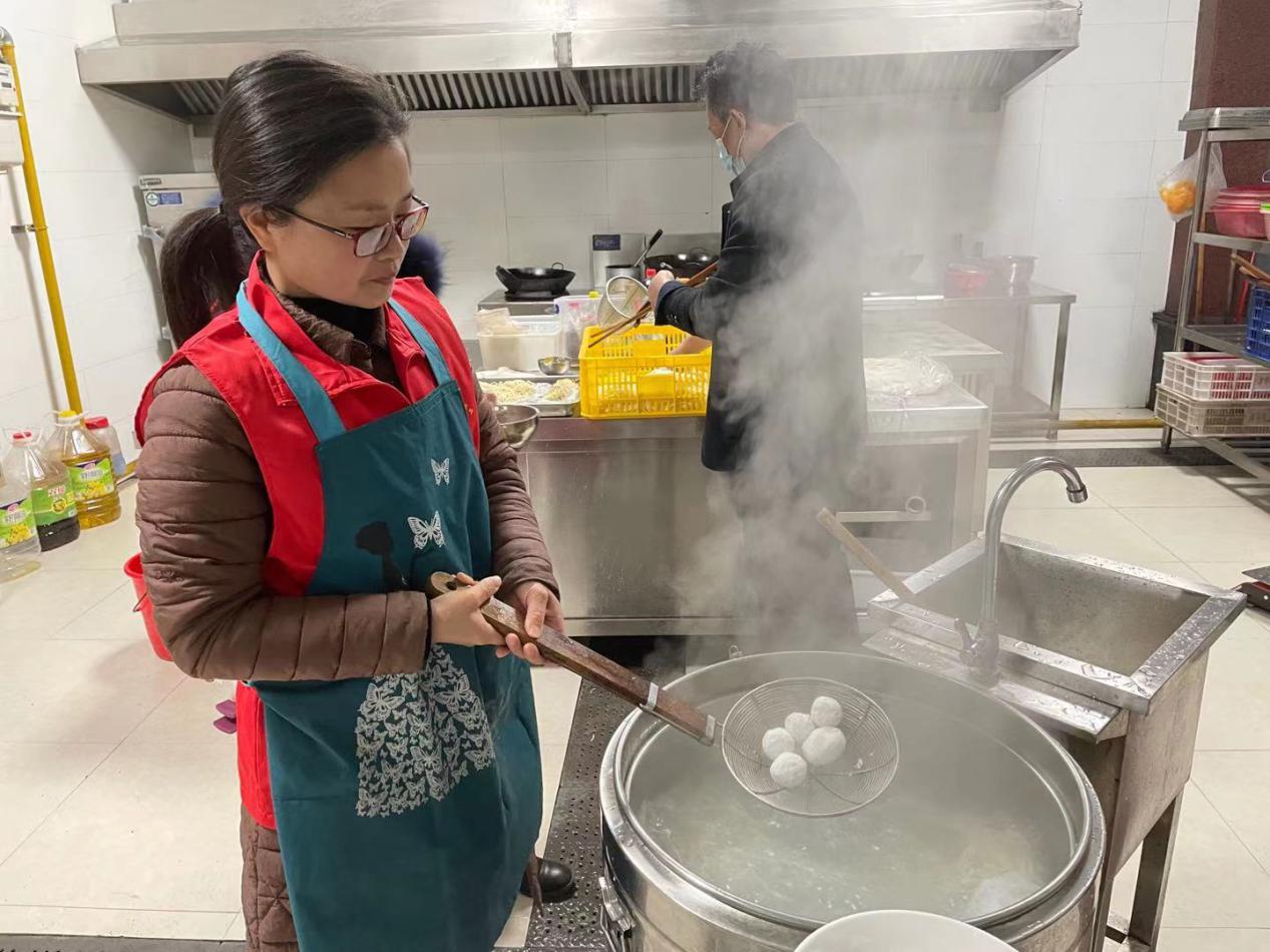青年志愿者们早早的来到食堂,趁全局人员吃早餐之际,要为每人准备一碗热气腾腾的元宵。大家分工协作,有的煮元宵、有的舀元宵、有的送元宵,一时锅碗瓢盆齐响,腾腾的热气、?甜甜的元宵,映着大家欢乐的笑脸。