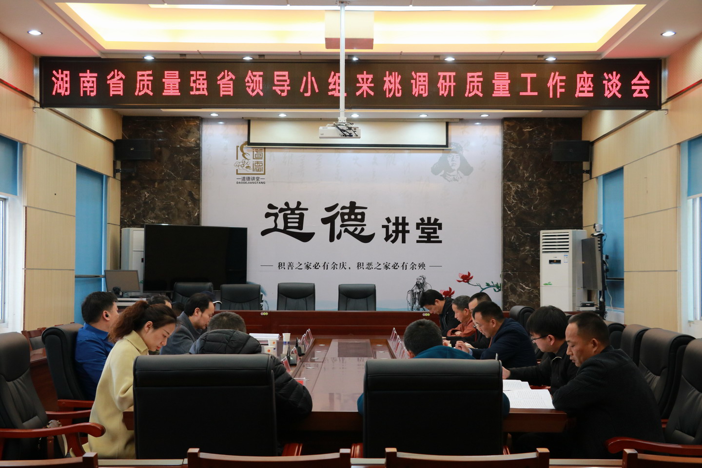 在桃源县市场监管局,调研组召开了调研座谈会,重点听取了桃源县市场监管局、发改局、农业农村局、住建局等有关单位关于质量工作的情况汇报。