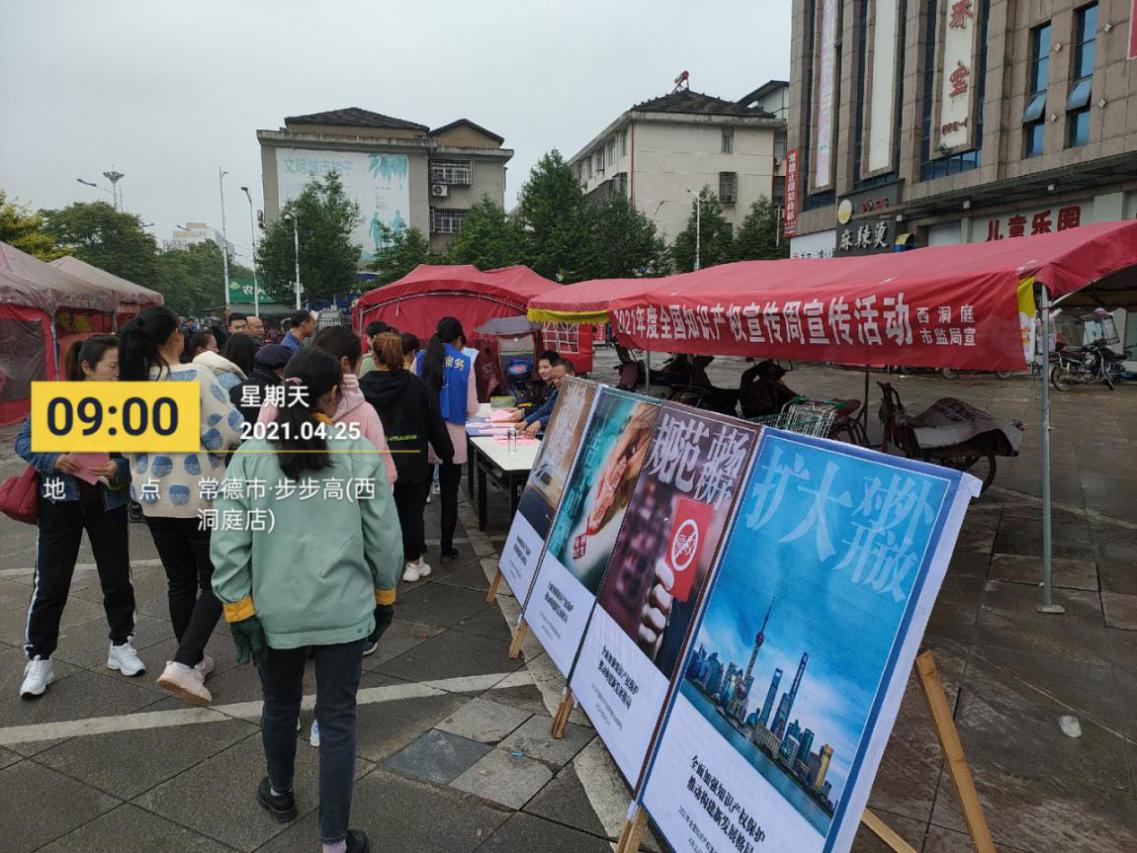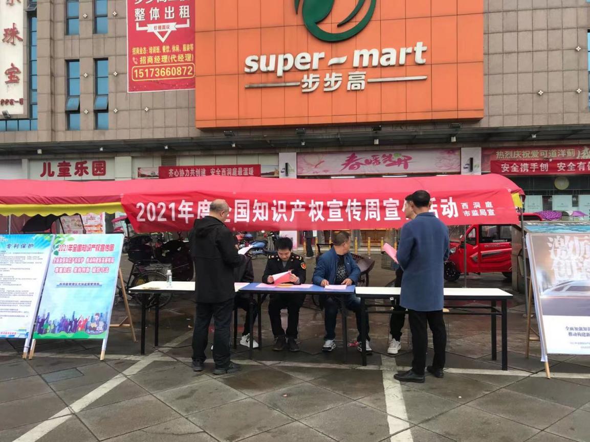 此次宣传活动以“全面加强知识产权保护推动构建新发展格局”为主题,活动地点位于人员较密集的西洞庭步步高超市广场。活动中,区市监局工作人员通过定点宣讲、集中展示、悬挂横幅、发放宣传资料等形式为现场群众答疑解惑,并积极指导群众遵守法律法规、尊重知识产权。
