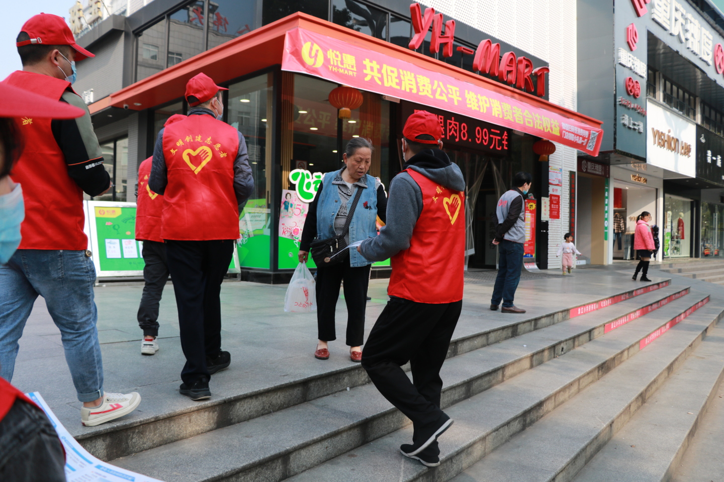 在悦惠超市、好润佳超市、电信营业厅等重点经营场所,志愿者通过发放消费实用宝典、消费防骗指引、预付式消费防“坑”指引等相关宣传手册的方式,针对居民在日常消费中遇到的实际问题进行解答和普及,讲解假冒伪劣商品、宣传辨假鉴别知识等,深化居民消费维权意识。