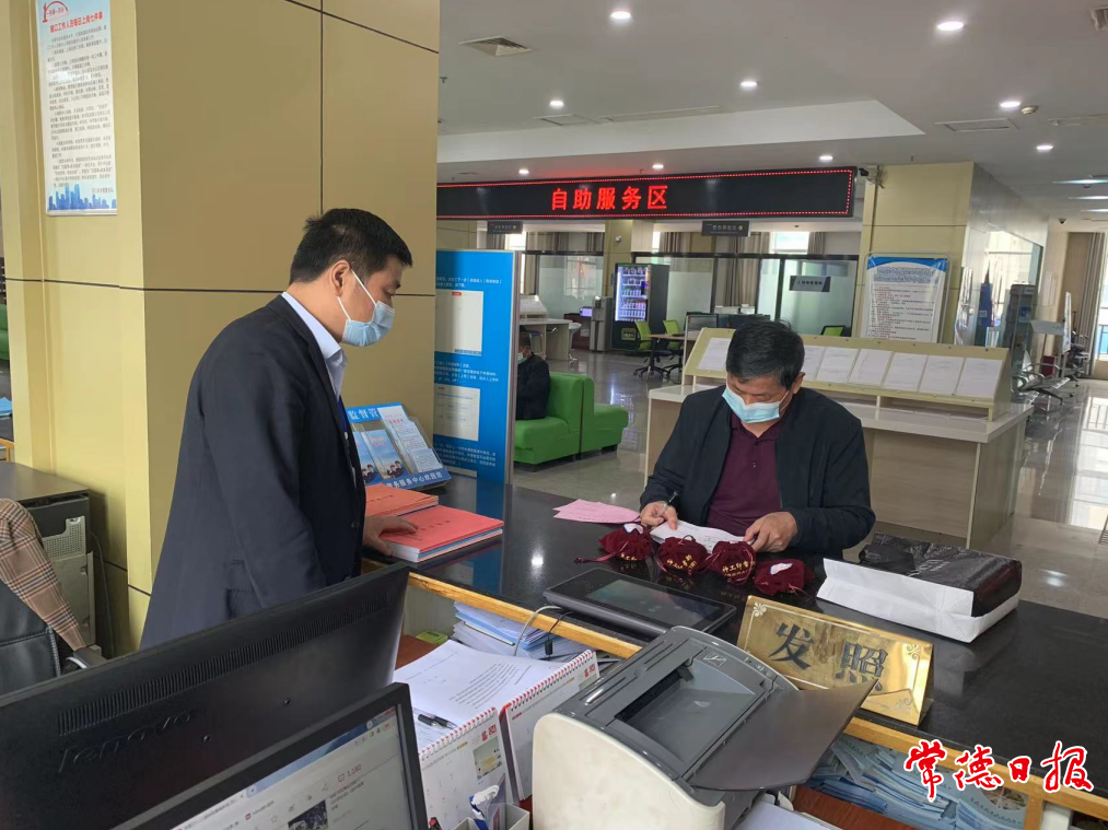 图为临澧县市场监管局为企业免费发放印章
