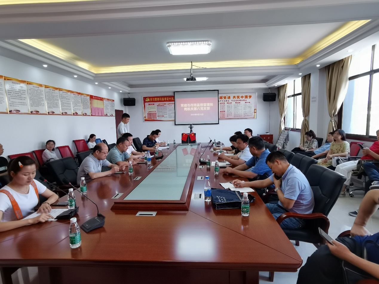 为丰富党员干部组织生活,提升基层组织凝聚力,增强党员获得感,6月12日,常德市市场监管局机关第六党支部根据支部建设“五化”与“三进入”要求,紧紧围绕增强“一感三悟”,努力做到“四个坚持”,切实增强党课活力,提高教育实效,增强组织仪式感,开展了形式多样、内容丰富的主题党日活动。