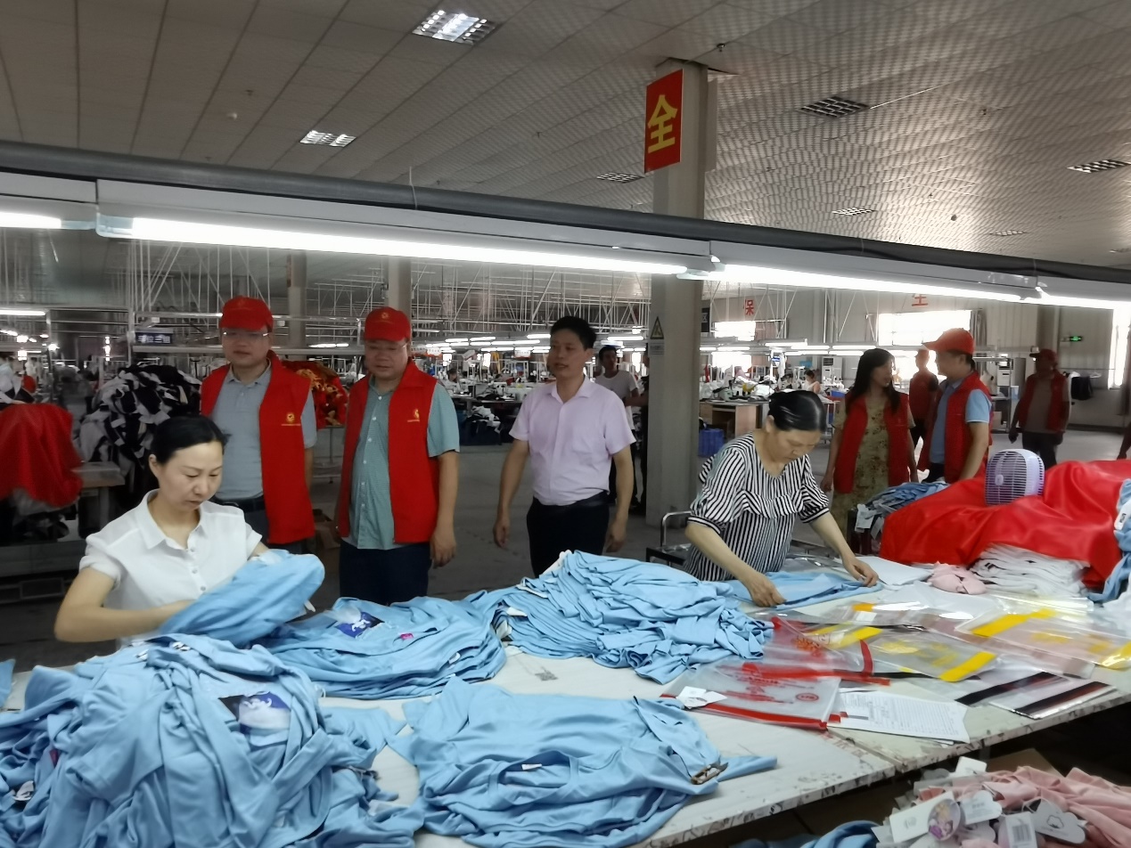 在常德市圣迪服装有限公司,同志们详细了解企业党建、经营发展、复工复产、脱贫帮扶等工作情况,并向企业宣传了常德市市场监管局全力支持企业复工复产的十项措施,详细介绍了市场主体年报、企业服务便利化等多项工作流程,提出与非公经济组织共同加强基层建设,助推企业发展,并向企业员工发放防范非法集资违法犯罪活动宣传手册。