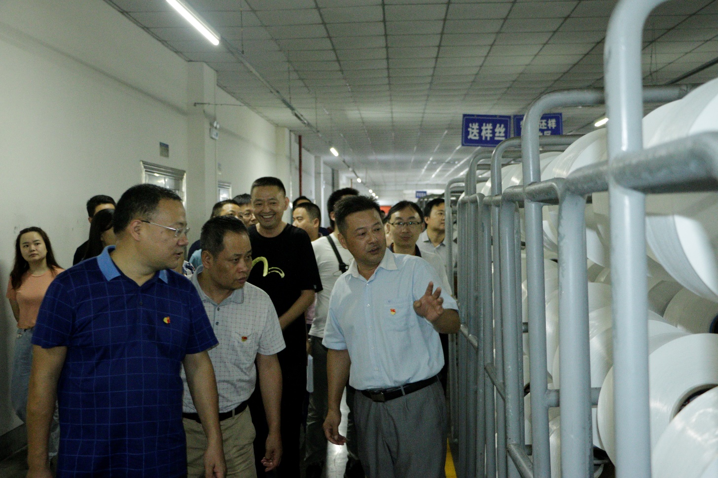 活动第一站,第六党支部组织参观了常德美华尼龙有限公司锦纶纤维生产车间和服装展厅,听取工作人员讲解公司主要生产产品、工艺流程及经营状况。