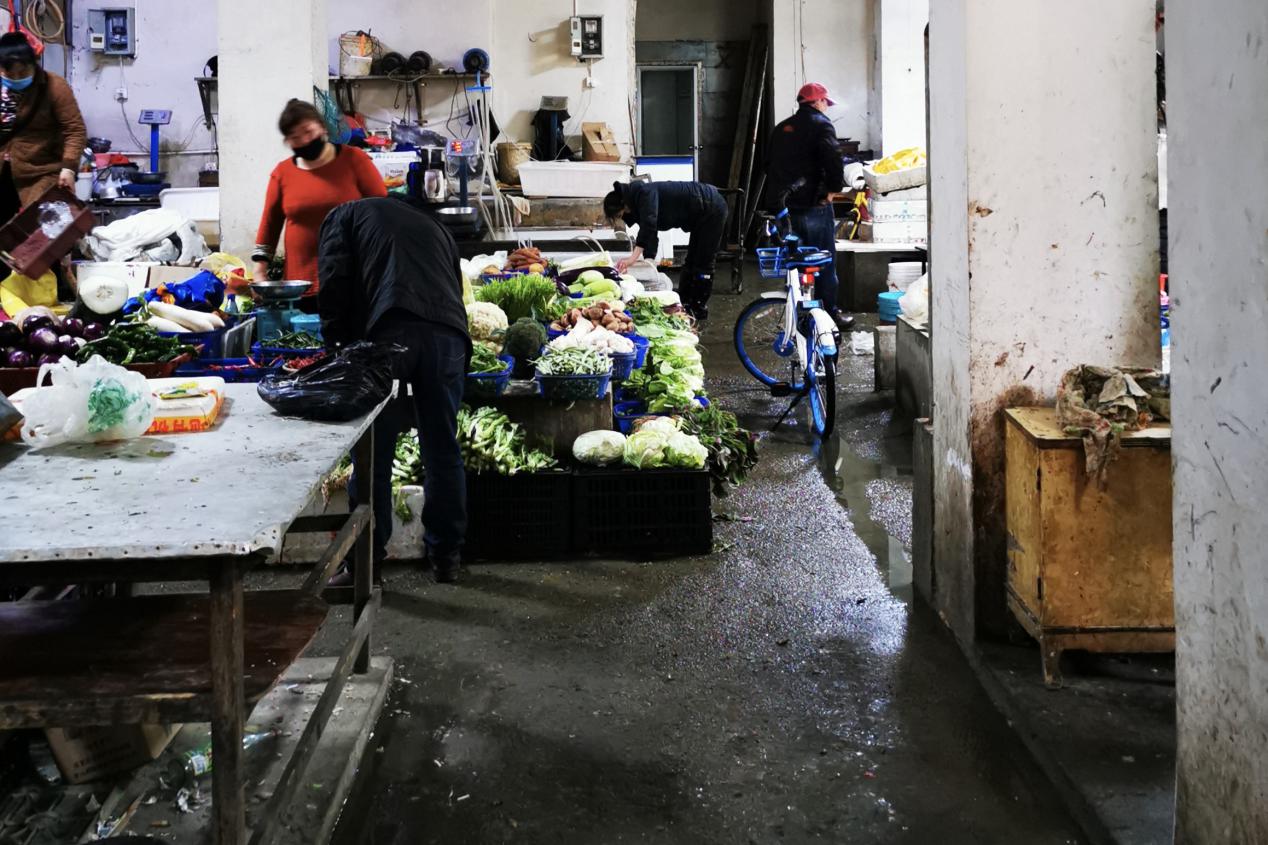 早在二十多天前,这里还是一片闹哄哄的临时农贸市场。市场里光线昏暗,污水满地,蔬菜和水产品等就随意摆放在地上,市场外的人行道被流动菜贩们占据了一大半。糟糕的环境,堪忧的食品安全,服务意识不强的经营户,甚至还可能遇到以次充好或短斤缺两,“买菜难、买菜贵”让周边居民充满困扰与无奈。