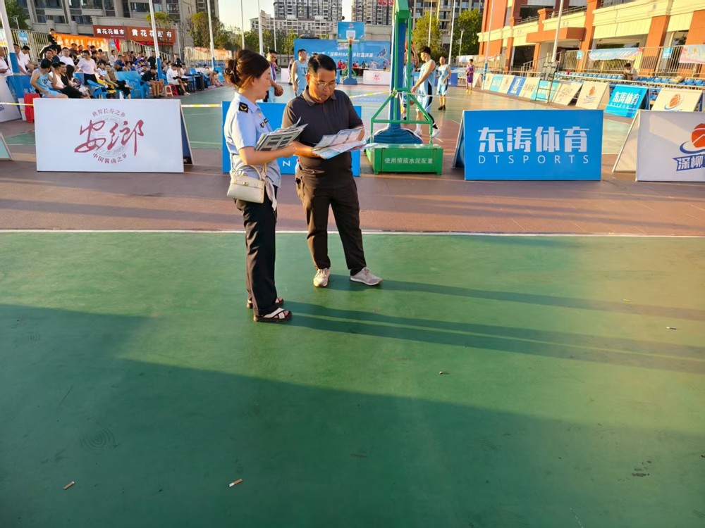 本次活动在安乡深柳村BA总决赛现场子龙小学进行。活动现场工作人员向前来观赛的居民们普及安全用药知识并发放安全用药知识手册,重点向居民们普及了高血压用药小常识、孕妈用药小常识、糖尿病用药小常识、药品不良反应小常识等安全用药宣传内容。现场工作人员、社区服务志愿者们为居民们免费测量了血压、血糖、血氧,并对居民们提出的病症、用药问题进行了现场解答。同时根据当前的季节特性,为居民们提供了当前季节流行病症的防治指导,零距离向居民们普及防止季节流行病症的用药常识。
