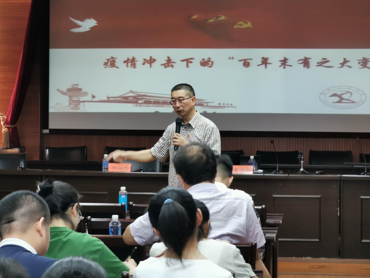 为提升我局青年干部的国际意识,树立正确的历史观、大局观、角色观,6月17日晚,常德市市场监管局青年夜校第八课在市场监管局南院9楼举行,本期邀请了黄向阳教授为青年干部授课,授课内容为《疫情冲击下的百年未有之大变局》,局党组成员、总工程师申昌欣同志为此次课程的带班领导。黄向阳教授通过当下世界格局的“局前局”与“局中局”将百年未有之大变局娓娓道来。