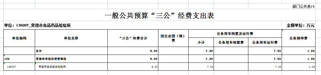 常德市食品药品检验所2023年一般公共预算“三公”经费支出表