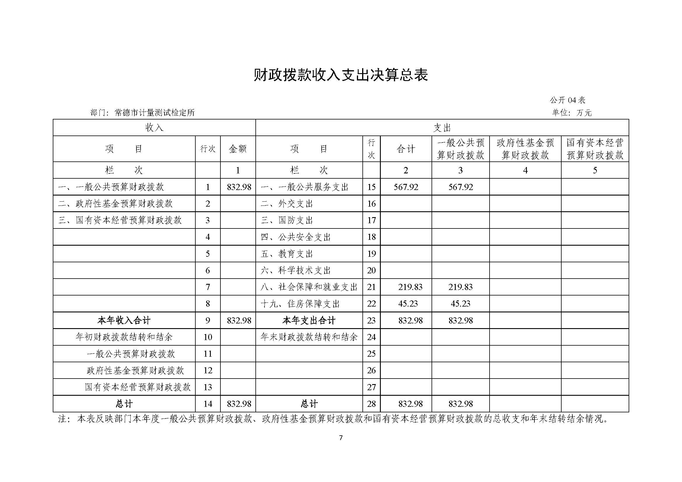 2024年度财政拨款收入总计832.98万元。与上年相比,减少415.54万元, 减少33.28%,主要是因为人员经费减少与计量项目能力提升减少,纳入财政拨款的非税收入变更为其他收入。财政拨款支出总计 832.98 万元。与上年相比,减少415.54万元,降低33.28%,主要是因为人员经费减少,计量项目能力提升减少,纳入财政拨款的非税收入支出变更为其他支出。