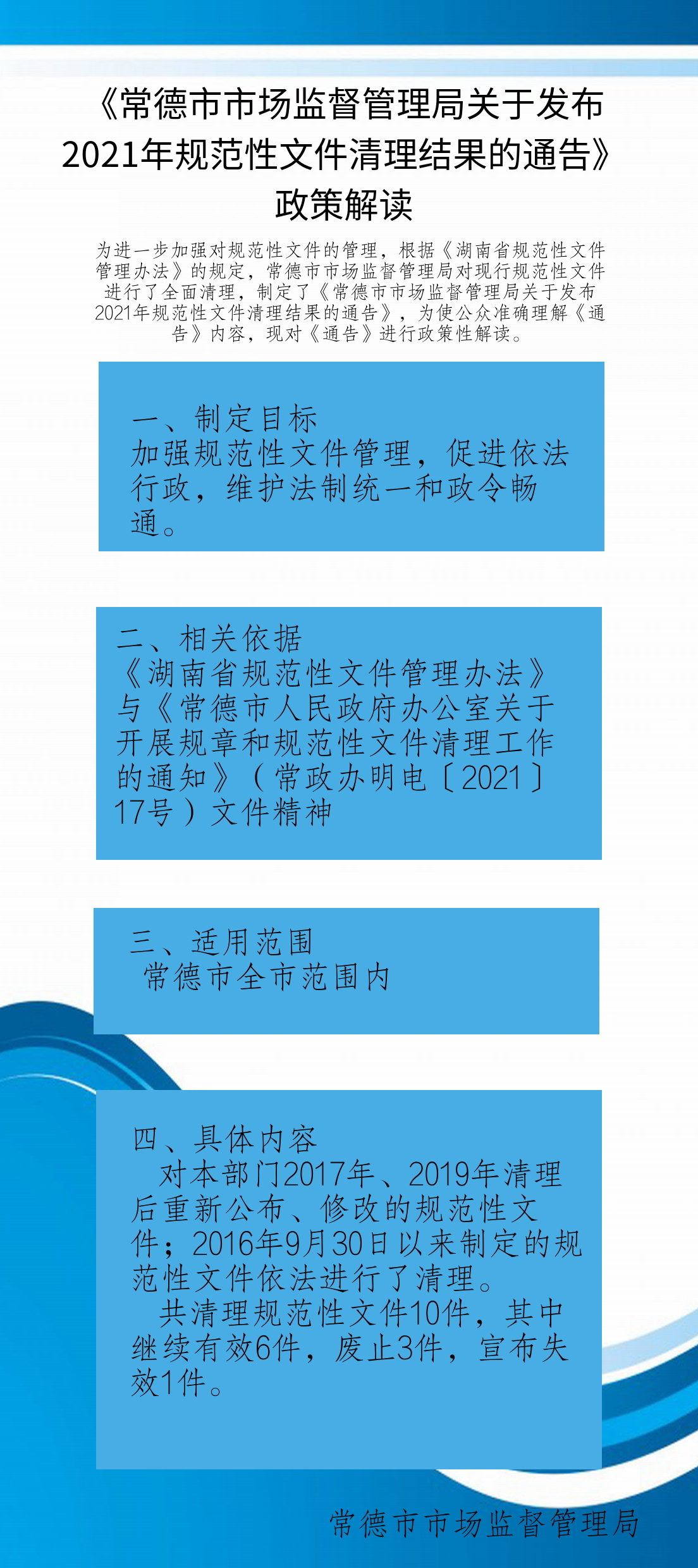 《常德市市场监督管理局关于发布2021年规范性文件清理结果的通告》政策解读