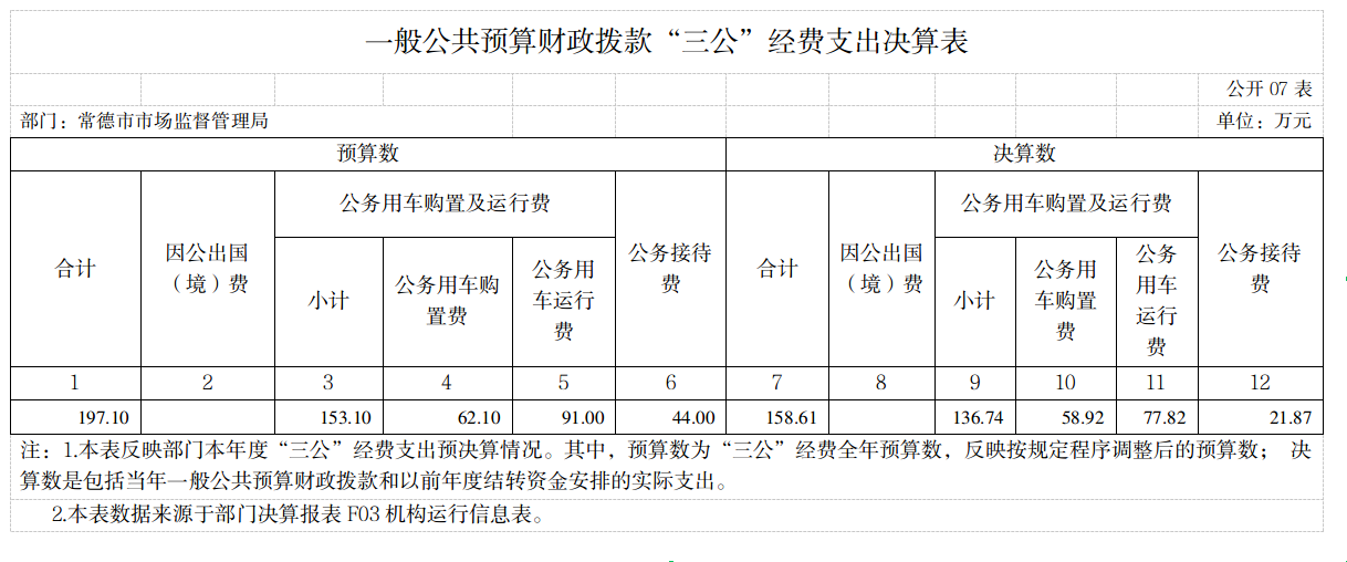 常德市市场监督管理局2021年一般公共预算财政拨款“三公”经费决算表