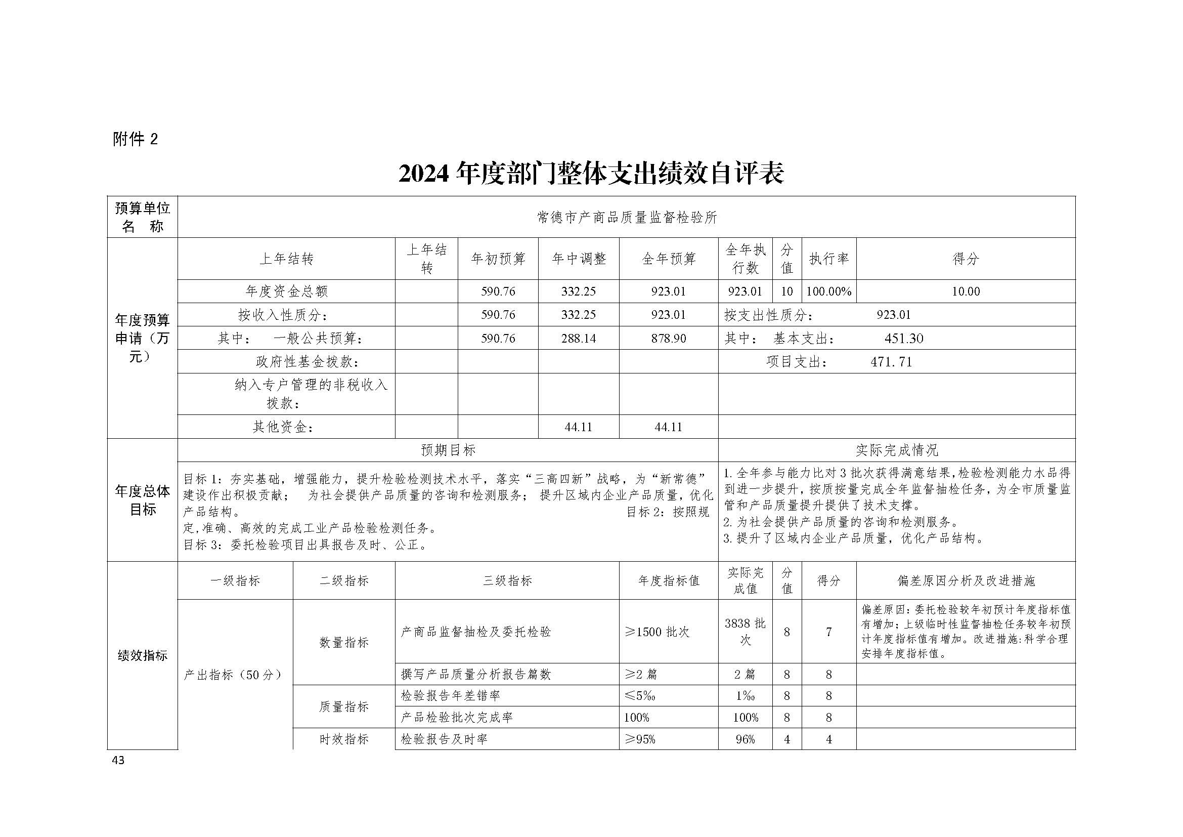 常德市产商品质量监督检验所2024年度部门决算公开