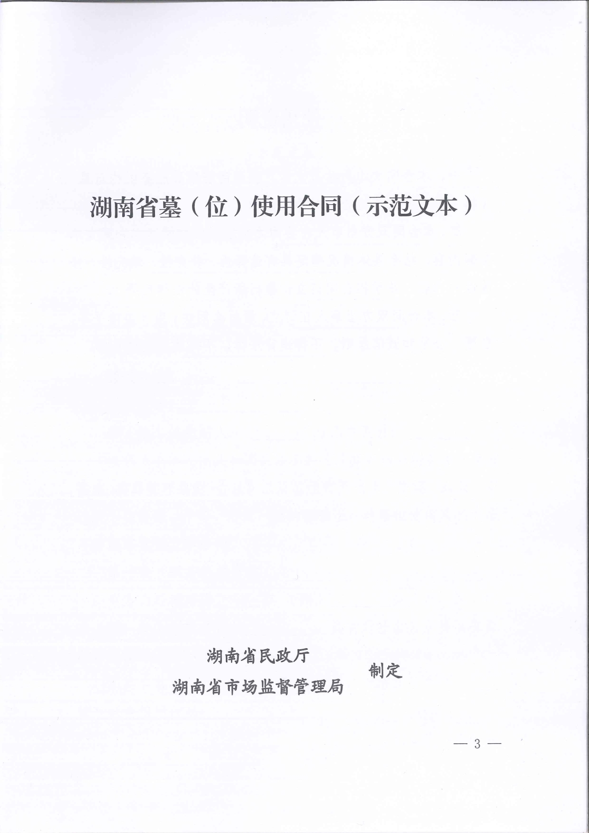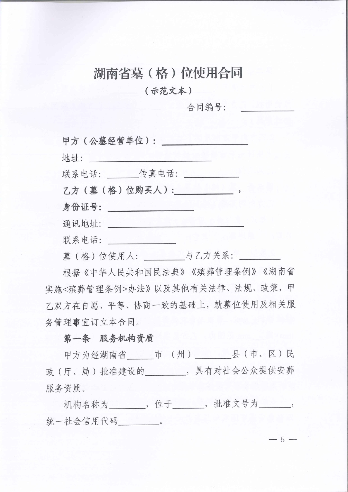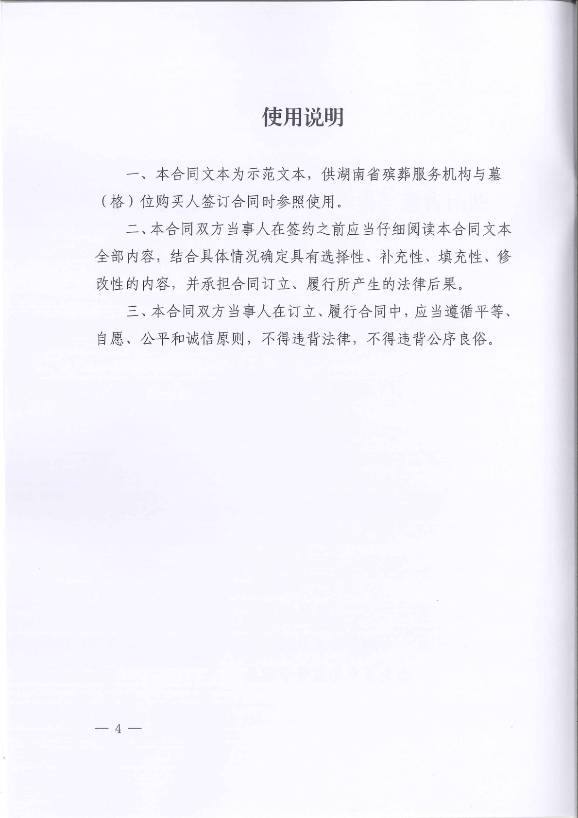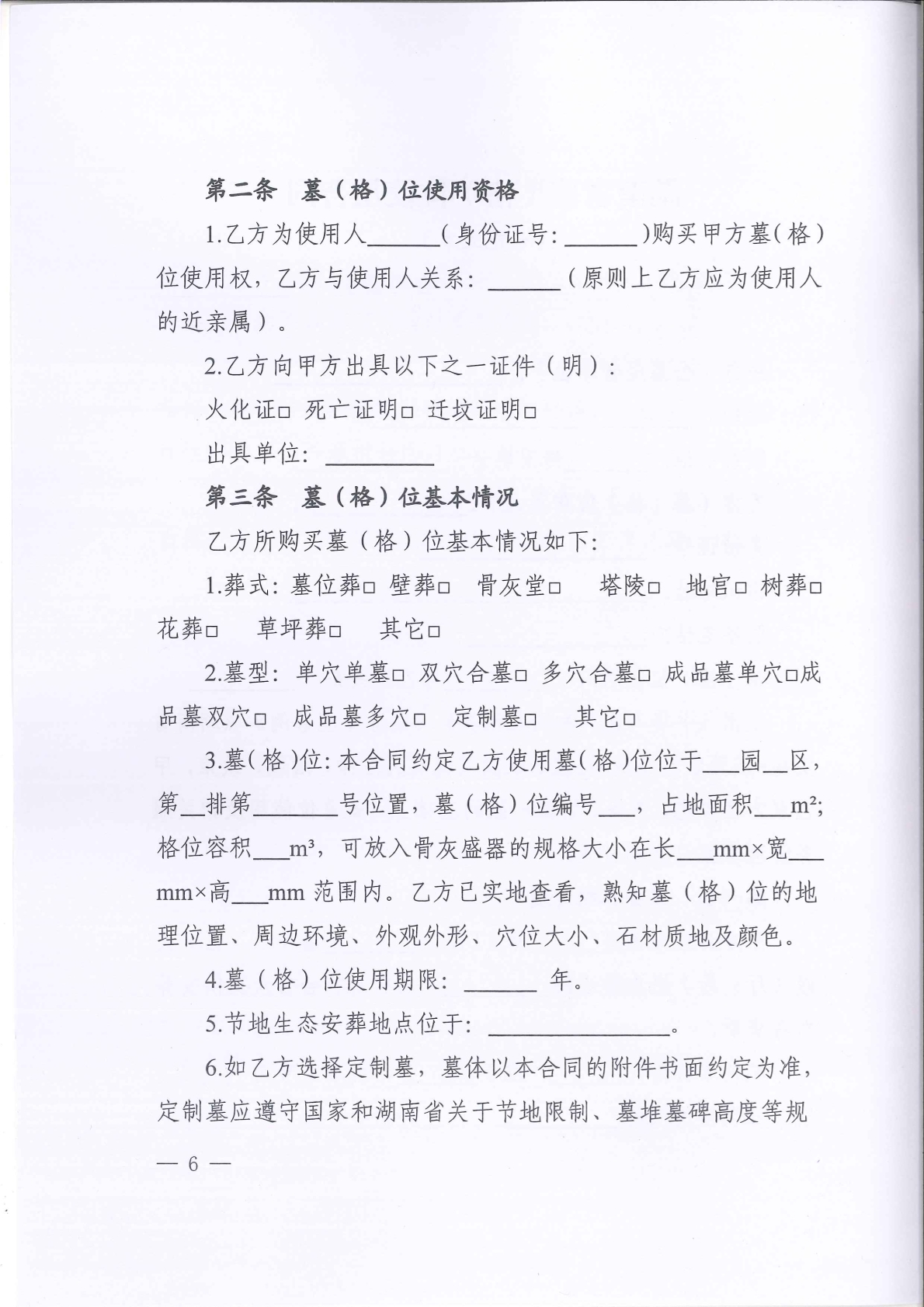《湖南省墓(格)位使用合同(示范文本)》