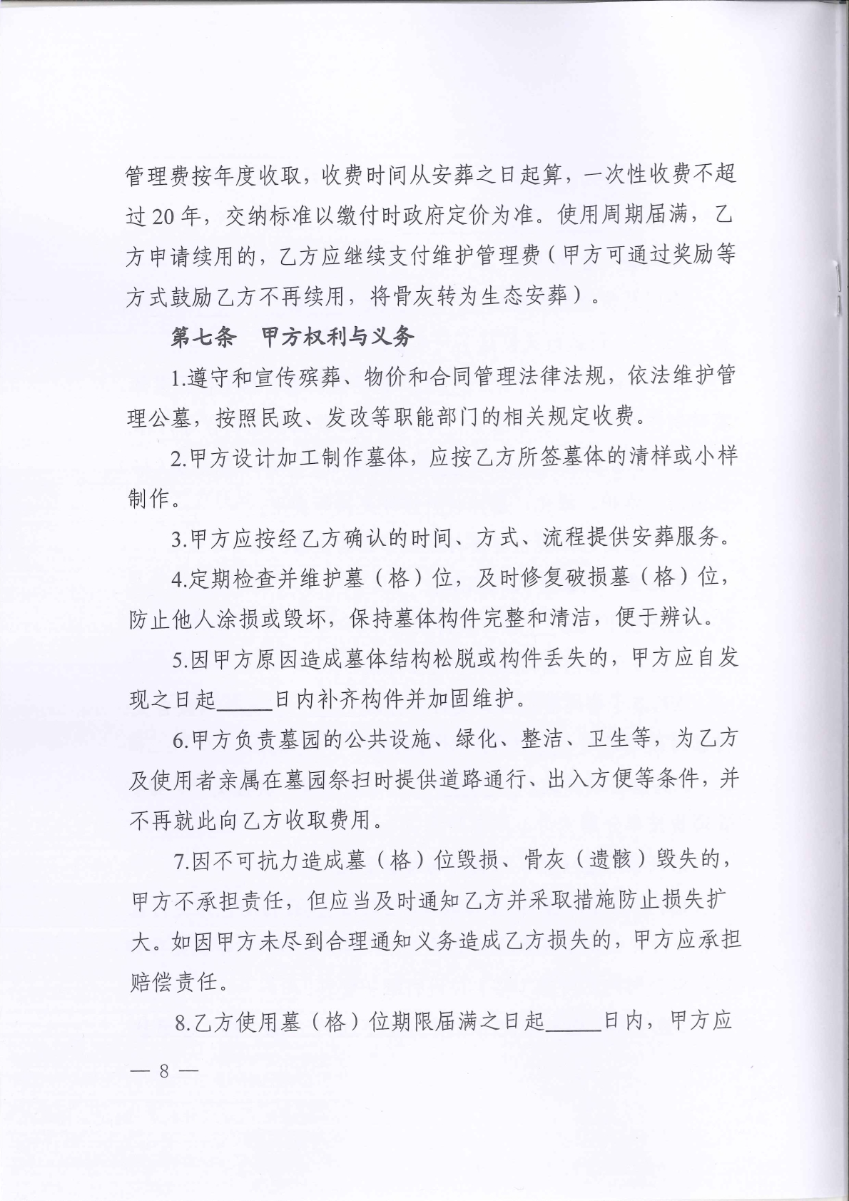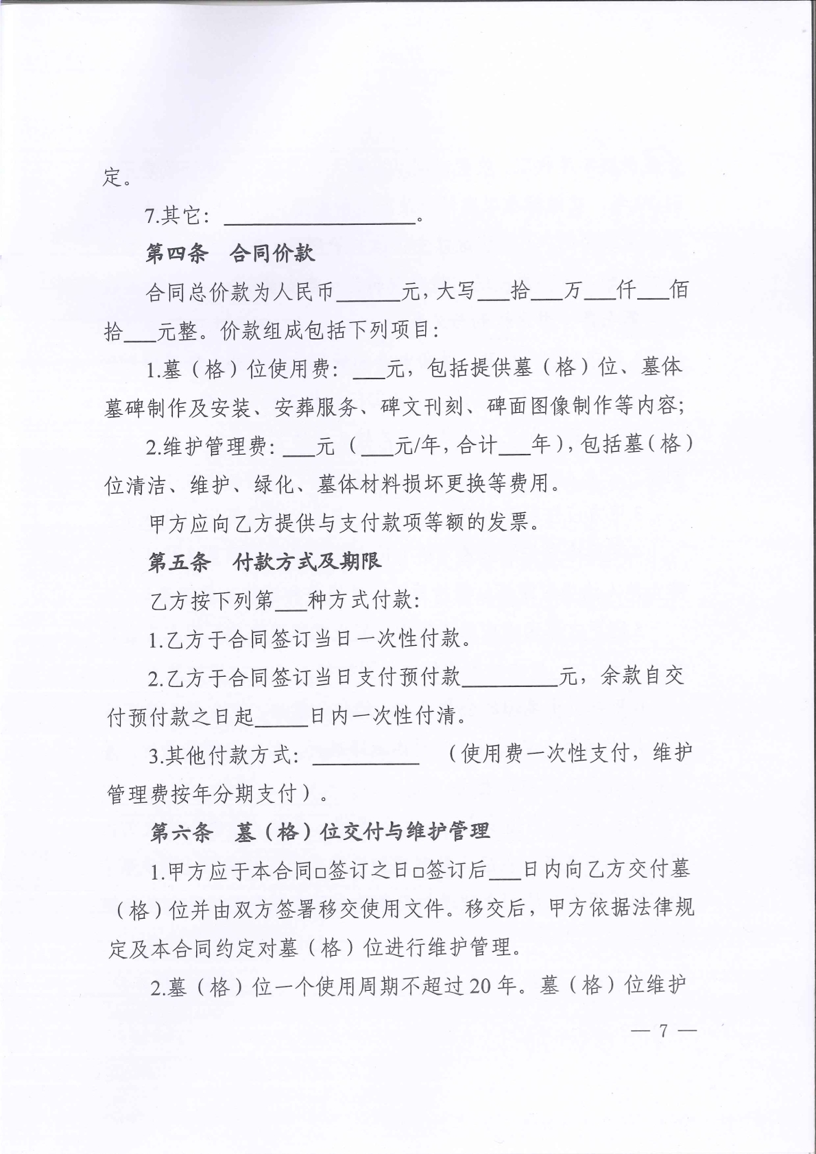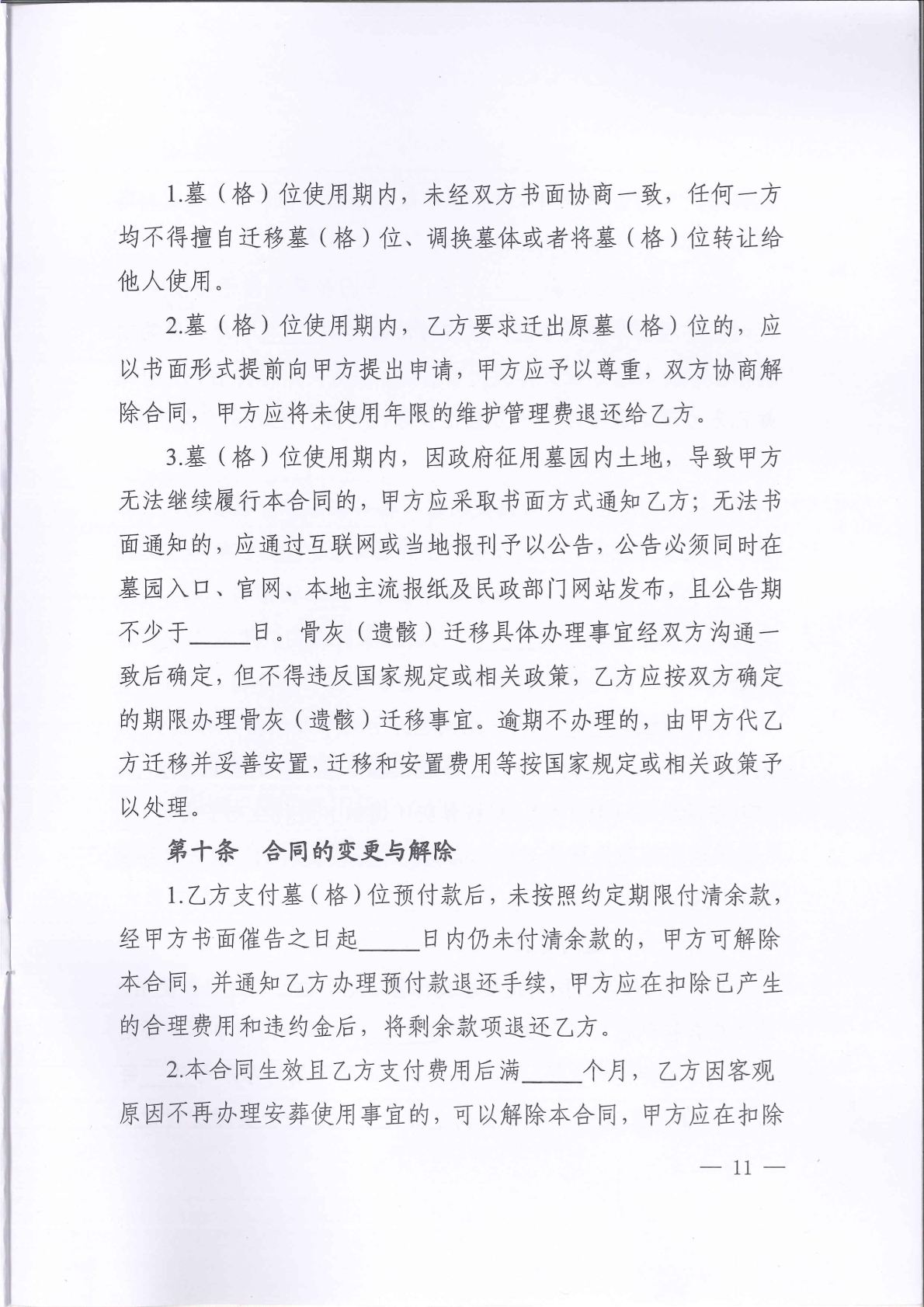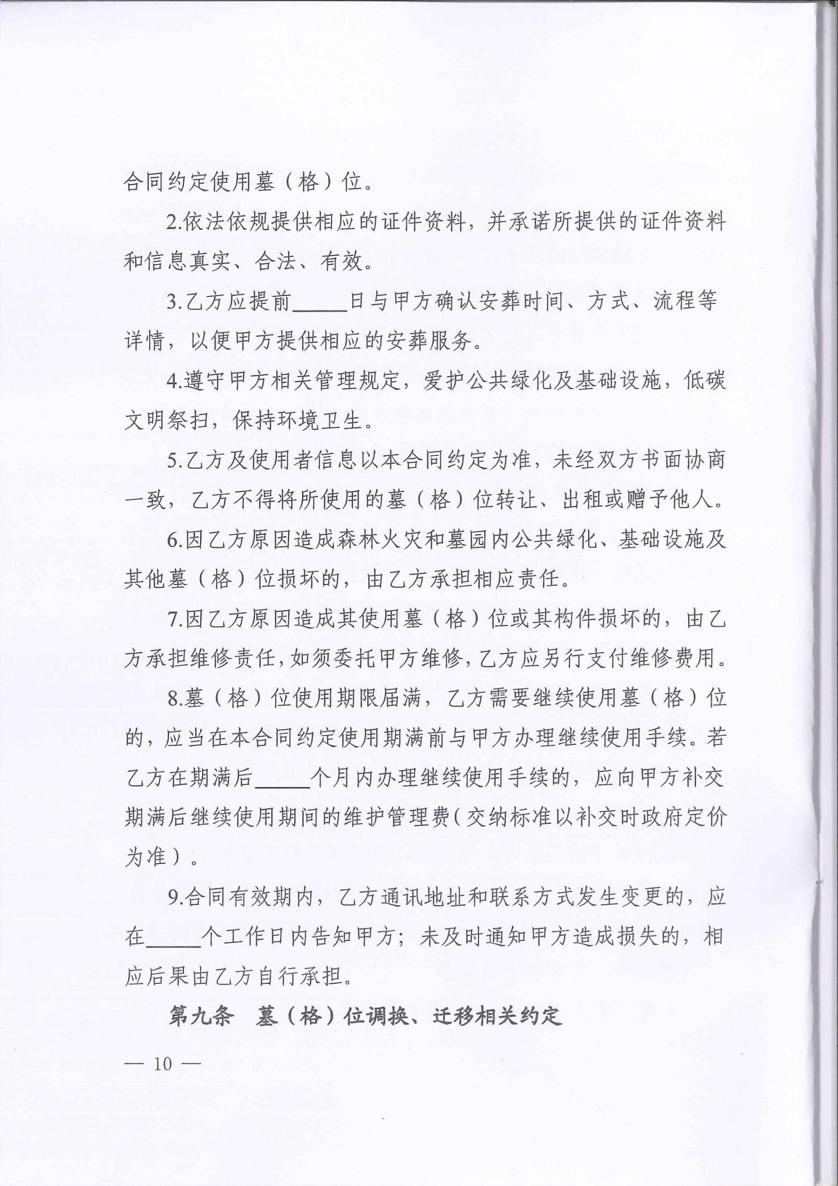 《湖南省墓(格)位使用合同(示范文本)》