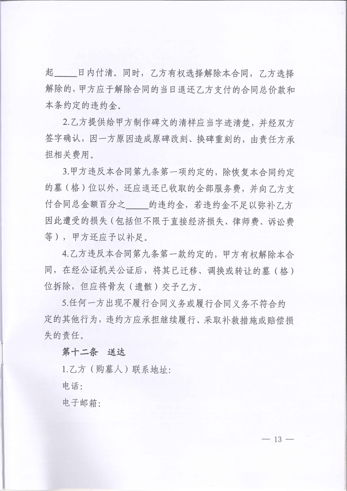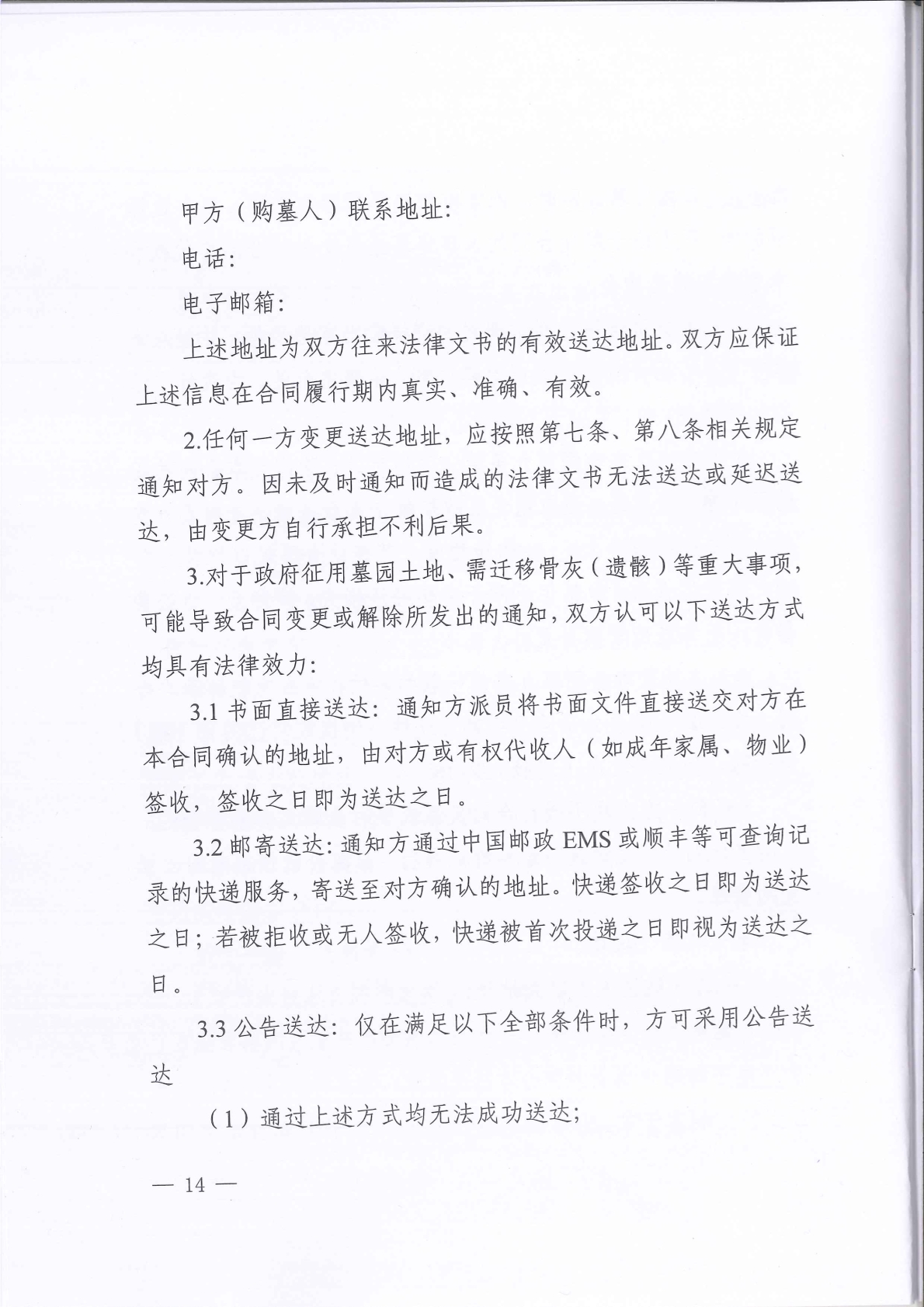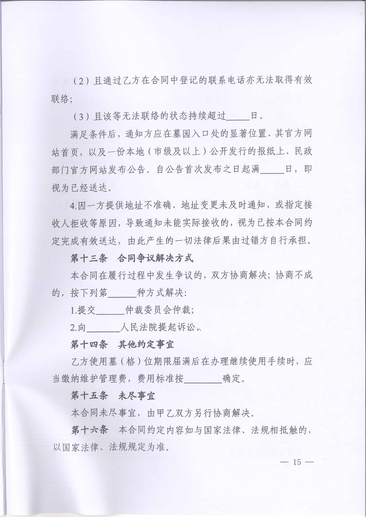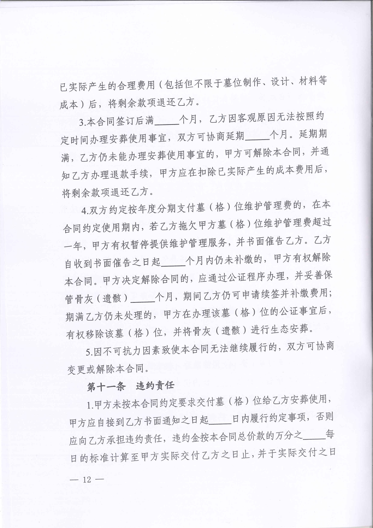 《湖南省墓(格)位使用合同(示范文本)》