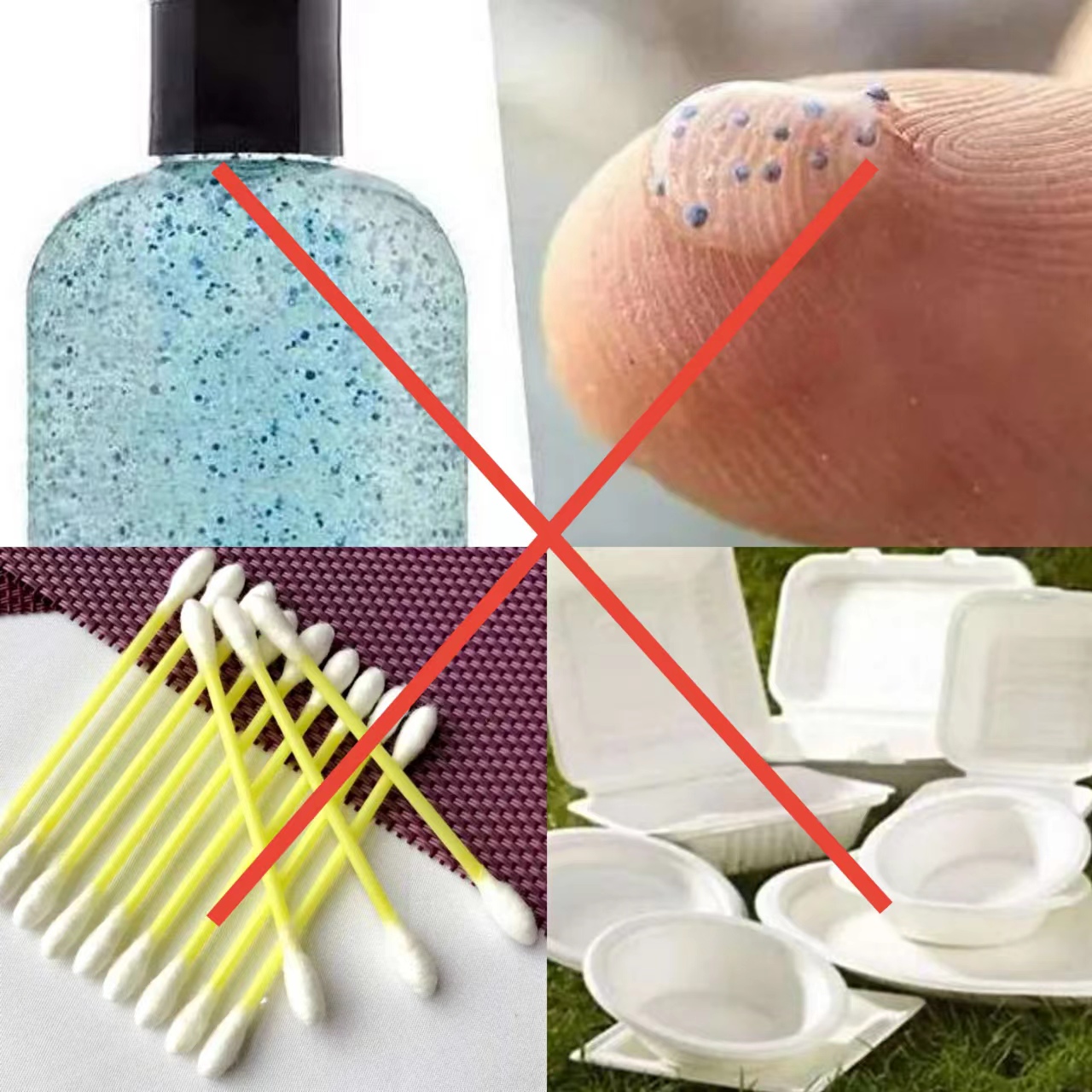2.一次性发泡塑料餐具、一次性塑料棉签,含塑料微珠的日化产品;